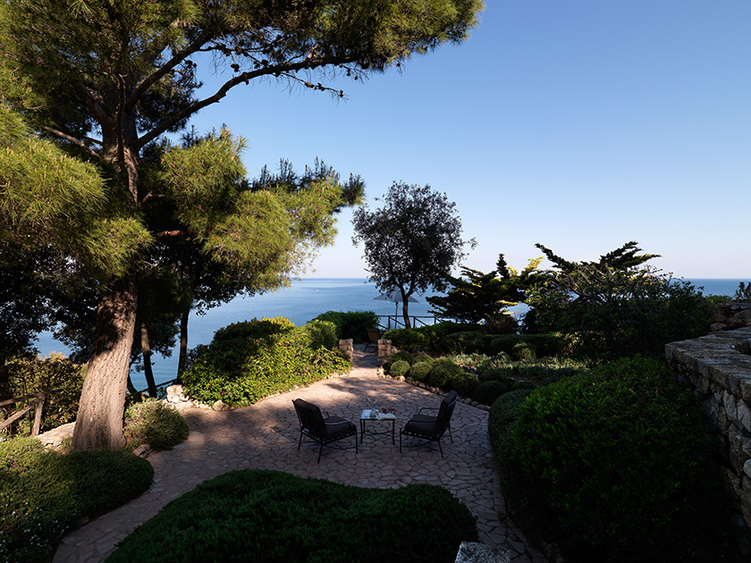 Чтобы увидеть рафинированную публику, лучше забронировать номер в центральном корпусе с видом на разбросанные по террасам открытые бары, наблюдая, как ближе к семи вечера девушки в шелковых кафтанах со спутниками в блейзерах выходят на аперитив. Чувственный бонус к вечернему коктейлю — огромные, благоухающие кусты розмарина, которыми обсажены террасы вплоть до спуска на пляж. Аромат, который может легко конкурировать с нишевой парфюмерной лавкой, останется одним из самых ярких чувственных воспоминаний об этом невероятном месте.